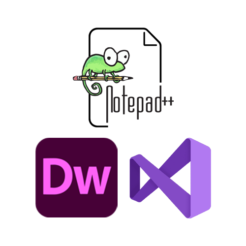Adobe Dreamweaver, Microsoft Visual Studio, Notepad++.