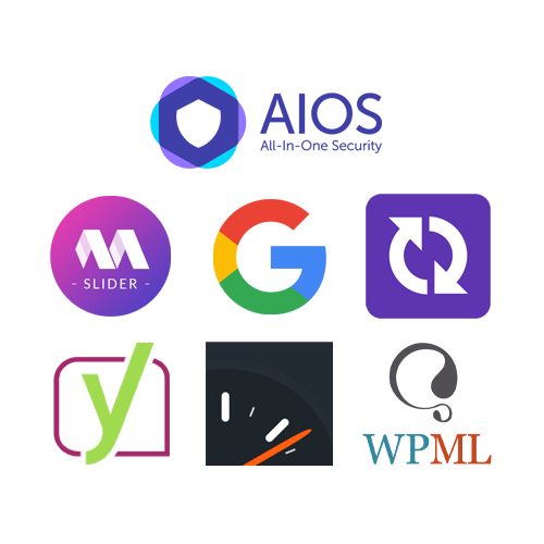 Slider Revolution, Yoast, AIO Firewall, Site Kit Google, WP Super Caché, etc.
